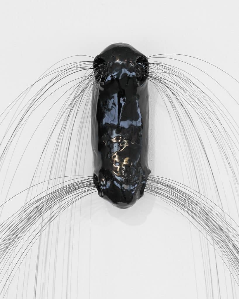 In meinen Zeichnungen ziehe ich die Körperlichkeit bisweilen wie eine Folie ab, um die darunter liegenden Dynamiken und fragilen Konstrukte freizulegen und auf Bewegungen, Richtungen, Berührungen zu reduzieren. Diese Flüchtigkeiten werden im Material fixiert, eingeritzt, eingebrannt und eingegossen. Schließlich verhelfe ich ihnen zum Wechsel in einen festen Aggregatzustand, bringe sie in den Raum, verleihe ihnen eine körperliche Präsenz. Sie werden materiell erfahrbar, bleiben durch ihre Oberflächenbehandlung jedoch von einem fließenden Charakter geprägt.